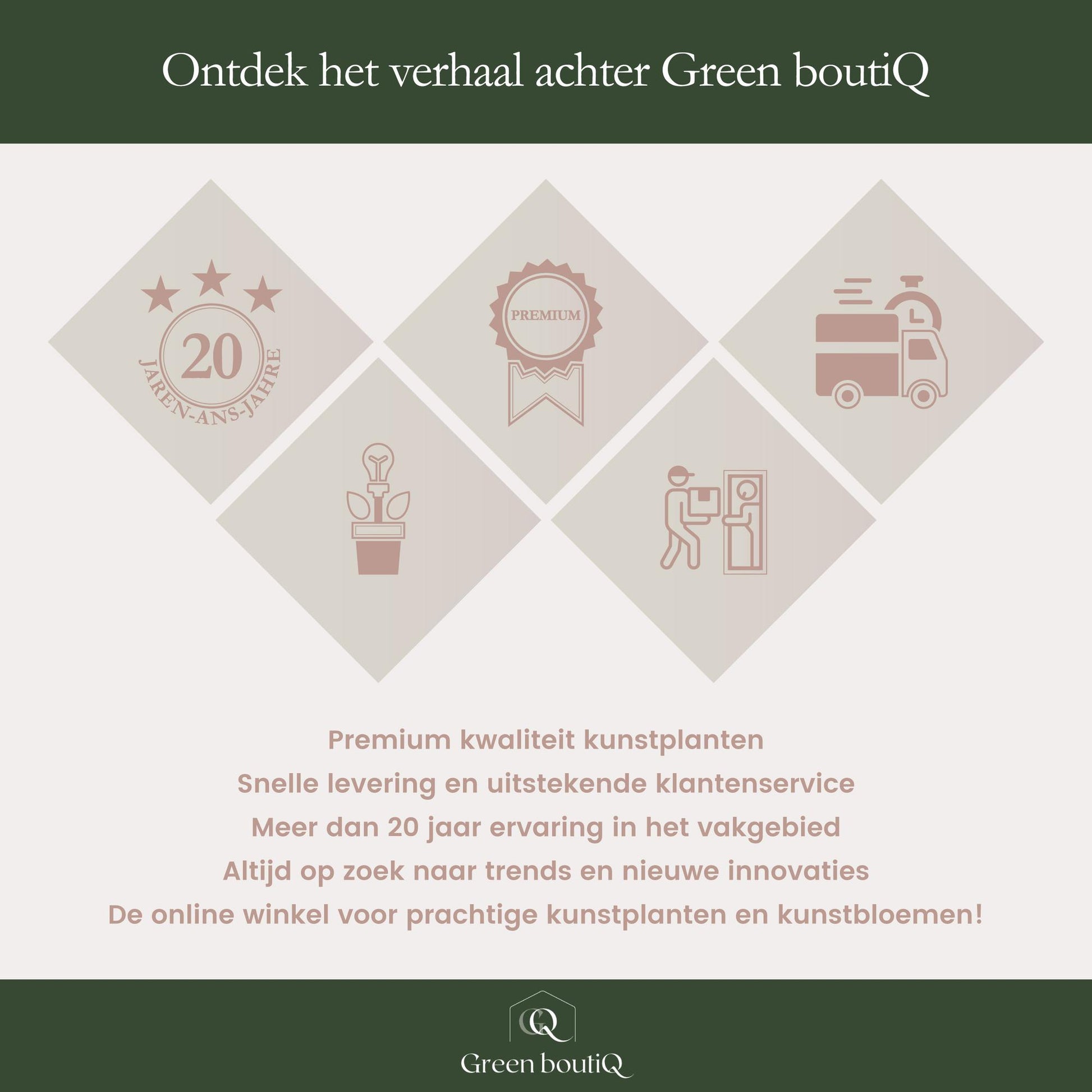 De kunstboeketten van Green boutiQ zijn allemaal met aandacht voor de kleinste details gemaakt en dat is bij dit boeket niet anders. De zorgvuldige afwerking en realistische uitstraling maken 'White Dream' een ware blikvanger in elke ruimte.