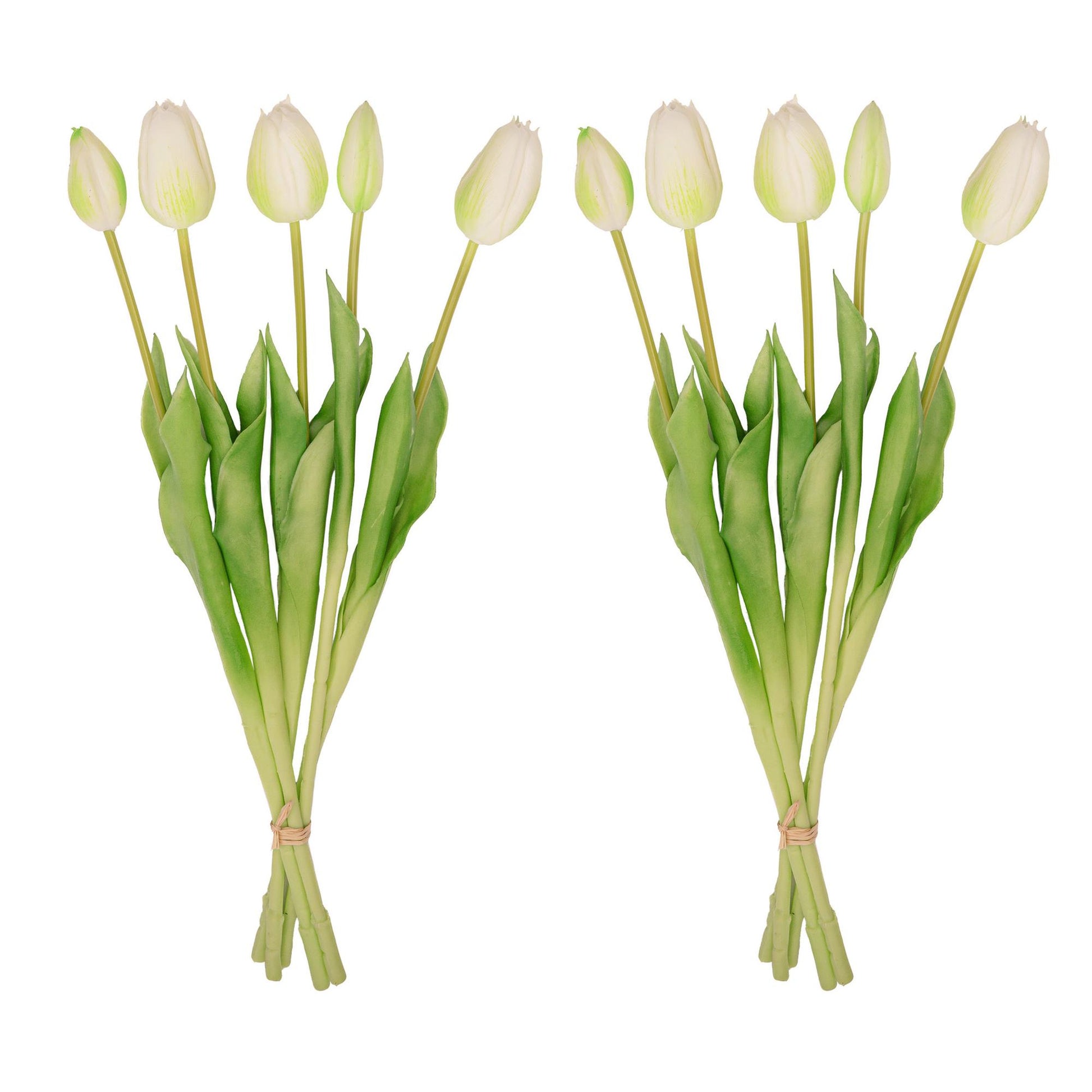 Dit boeket bestaat uit 2x 5 prachtige kunsttulpen (10 stuks) in een levendige Wit/Groen kleur, met een realistische ‘Real Touch’ afwerking van 42 cm.